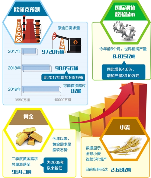 今年以來,受世界經(jīng)濟(jì)復(fù)蘇、貿(mào)易摩擦升級(jí)及地緣政治等因素影響,全球主要大宗商品市場在整體升溫的同時(shí),市場結(jié)構(gòu)有所分化。石油等能源類大宗商品價(jià)格繼去年大幅躍升28%之后,今年繼續(xù)顯著攀升;金屬價(jià)格整體降溫,黑金屬和有色金屬價(jià)格繼續(xù)分化;農(nóng)產(chǎn)品價(jià)格則保持相對(duì)平穩(wěn),呈小幅上揚(yáng)態(tài)勢。展望下半年,全球大宗商品整體價(jià)格將繼續(xù)保持溫和上漲,但不同產(chǎn)品分化依舊。世界銀行代理首席經(jīng)濟(jì)學(xué)家尚塔亞南·德瓦拉揚(yáng)表示:“全球經(jīng)濟(jì)增長加快和需求上升是推動(dòng)大部分大宗商品漲價(jià)和未來大宗商品價(jià)格看漲預(yù)期的重要因素。”