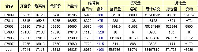 主力CF809合約當(dāng)日交易走勢圖