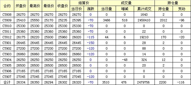 主力CY810合約當(dāng)日交易走勢