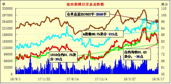 17日紐約期棉市場(chǎng)跌勢(shì)收盤。1812合約結(jié)算價(jià)81.39美分,跌41點(diǎn);1903合約結(jié)算價(jià)81.71美分,跌30點(diǎn);1905合約結(jié)算價(jià)82.10美分,跌23點(diǎn)。當(dāng)日12月合約小幅低開,開盤后因缺乏有力支撐交易重心走低,低點(diǎn)處賣盤入場(chǎng),市場(chǎng)受支撐上行,受獲利了結(jié)盤壓力高點(diǎn)處回落,后至收盤處維持震蕩態(tài)勢(shì),因缺乏方向指引,最終以小幅下跌收盤。本周12合約累計(jì)下跌近400點(diǎn)。有分析指出,近日紐期大跌或?qū)?dòng)現(xiàn)貨銷售,觀望下周美棉出口周報(bào)出口數(shù)據(jù)。中美代表團(tuán)計(jì)劃于下周在華盛頓進(jìn)行貿(mào)易磋商,目前結(jié)果尚未可知,市場(chǎng)普遍持謹(jǐn)慎觀望態(tài)度。外圍美元指數(shù)下跌,大豆、玉米和小麥期貨上漲。