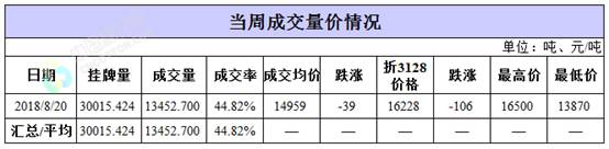 累計(jì)情況:截至8月20日,累計(jì)計(jì)劃出庫(kù)339.1萬(wàn)噸,累計(jì)出庫(kù)成交191.1萬(wàn)噸,成交率為56.36%;成交最高價(jià)17700元/噸,最低價(jià)12700元/噸。
