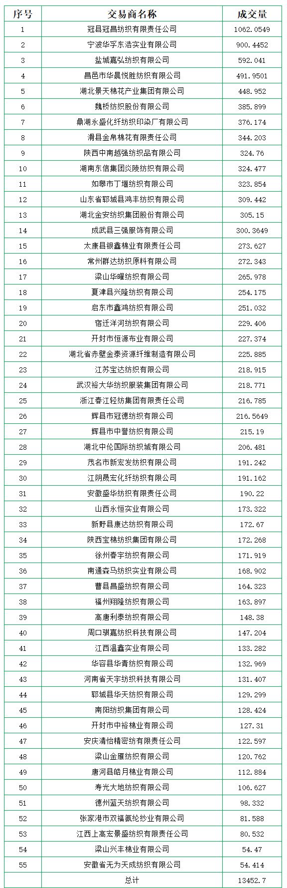 地產(chǎn)棉成交8588.603噸,成交率37%,成交均價(jià)14556元/噸,平均加價(jià)254元/噸,最高成交價(jià)15480元/噸,最低成交價(jià)13870元/噸。新疆棉成交4864.097噸,成交率72%,成交均價(jià)15671元/噸,平均加價(jià)905元/噸,最高成交價(jià)16500元/噸,最低成交價(jià)14960元/噸。