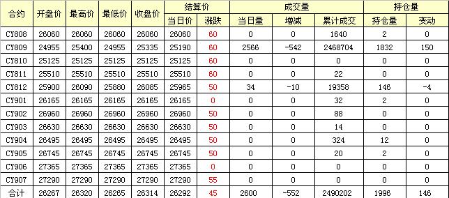 主力CY810合約當(dāng)日交易走勢(shì)