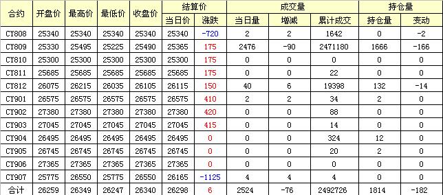 主力CY810合約當(dāng)日交易走勢