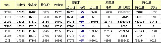 主力CF809合約當日交易走勢圖