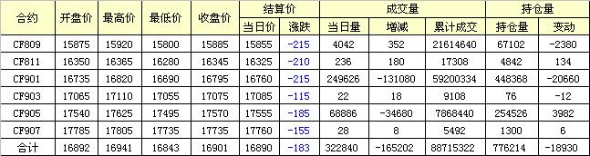 主力CF809合約當(dāng)日交易走勢(shì)圖