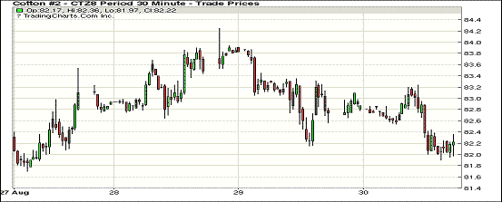 8月30日紐約期棉市場跌勢延續(xù)。1812合約結(jié)算價(jià)82.26美分,跌50點(diǎn);1903合約結(jié)算價(jià)82.63美分,跌58點(diǎn);1905合約結(jié)算價(jià)83.05美分,跌58點(diǎn)。其他合約下跌9-63點(diǎn)不等。當(dāng)日12月合約小幅低開,開盤后因缺乏有力支撐開盤后交易重心小幅下行,低點(diǎn)處買盤入場,市場受支撐走高,至當(dāng)日高點(diǎn)83.24美分處手獲利了結(jié)盤壓力交易重心下行,至收盤處未得到利好因素支撐回彈,最終維持前一日跌勢,以小幅下跌收盤。據(jù)美國農(nóng)業(yè)部(USDA),8.17-8.23一周美國凈簽約出口2018/19年度陸地棉34156噸,陸地棉裝運(yùn)39145噸;凈簽約本年度皮馬棉2404噸;皮馬棉裝運(yùn)544噸;凈簽約2019/20年度陸地棉11249噸。目前整體市場氛圍略顯清淡,鮮有利好因素傳出。而遲遲無解的中美及美土貿(mào)易爭端、美元走強(qiáng)以及尚無定論的新年度棉花產(chǎn)量等因素疊加,又使期棉價(jià)格難以出現(xiàn)大幅回彈。外圍美元指數(shù)上漲,小麥、玉米和大豆期貨下跌。