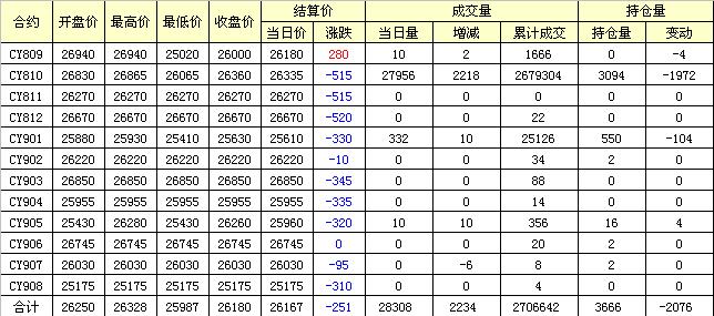 主力CY810合約當(dāng)日交易走勢