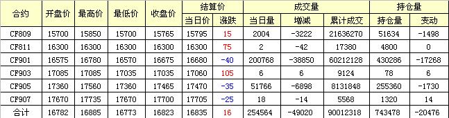 主力CF809合約當(dāng)日交易走勢圖