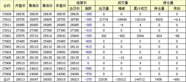 主力CY810合約當(dāng)日交易走勢