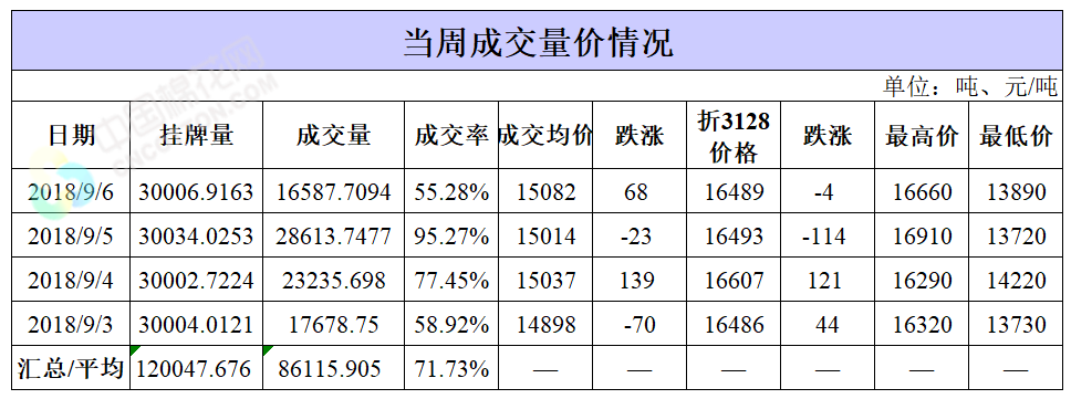 累計(jì)情況:截至9月6日,累計(jì)計(jì)劃出庫378.1萬噸,累計(jì)出庫成交220.3萬噸,成交率為58%;成交最高價(jià)17700元/噸,最低價(jià)12700元/噸。