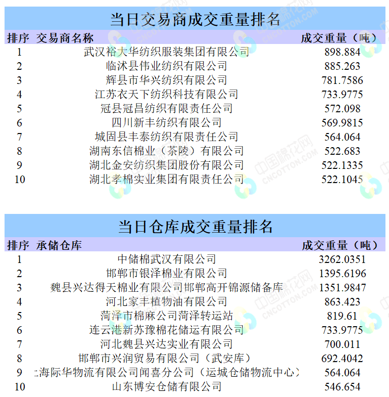 當(dāng)日情況:地產(chǎn)棉成交4754.0966噸,成交率27%,成交均價(jià)14713元/噸,平均加價(jià)355元/噸,最高成交價(jià)16390元/噸,最低成交價(jià)13890元/噸。新疆棉成交11833.6128噸,成交率97%,成交均價(jià)15231元/噸,平均加價(jià)885元/噸,最高成交價(jià)16660元/噸,最低成交價(jià)14020元/噸。