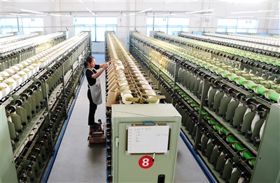 近年來(lái),海安加強(qiáng)技術(shù)改造,提升裝備水平,狠抓品牌引領(lǐng),著力培育壯大紡織產(chǎn)業(yè)新動(dòng)能,推動(dòng)企業(yè)走高質(zhì)量發(fā)展之路。今年2月,江蘇平美紗業(yè)公司新添置28臺(tái)套先進(jìn)紡紗設(shè)備,實(shí)現(xiàn)銷售收入增長(zhǎng)1倍、用工成本節(jié)省一半。圖為該公司員工在操作先進(jìn)機(jī)械生產(chǎn)包覆紗。(標(biāo)題:海安加強(qiáng)技術(shù)改造 著力培育紡織產(chǎn)業(yè)新動(dòng)能)