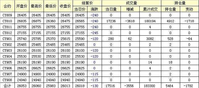 主力CY810合約當(dāng)日交易走勢