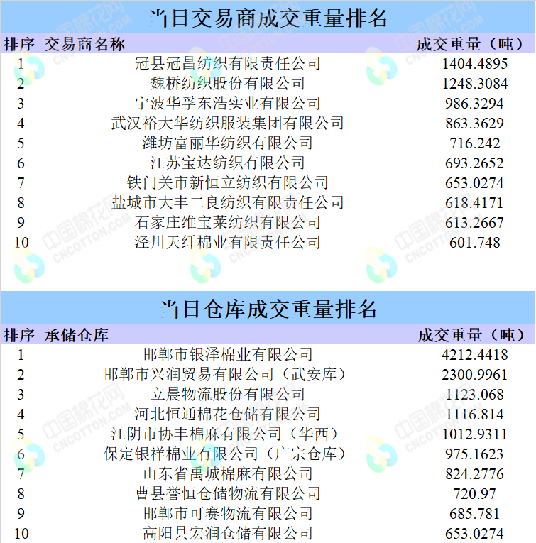 當(dāng)日情況:地產(chǎn)棉成交4973.0683噸,成交率54%,成交均價15038元/噸,平均加價305元/噸,最高成交價16320元/噸,最低成交價14420元/噸。新疆棉成交18222.8904噸,成交率86%,成交均價14936元/噸,平均加價503元/噸,最高成交價16570元/噸,最低成交價14160元/噸。