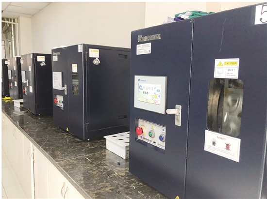 高效運(yùn)轉(zhuǎn)的背后是自動(dòng)化設(shè)備帶來(lái)的精準(zhǔn)化生產(chǎn)。跟著王伯明的腳步,來(lái)到專為車間配套的小樣實(shí)驗(yàn)及調(diào)配室。只見(jiàn),身穿白色工作服的工作人員輕點(diǎn)鼠標(biāo),電腦便會(huì)自動(dòng)生成小樣配方,全自動(dòng)的滴液系統(tǒng)等設(shè)備,“乖乖地”將所需染化料精準(zhǔn)投送至染缸,實(shí)現(xiàn)標(biāo)準(zhǔn)化、自動(dòng)化生產(chǎn)。“在這種模式下,小樣出貨快,準(zhǔn)確度高,生產(chǎn)效率提高20%以上。”王伯明說(shuō),這也是標(biāo)準(zhǔn)化生產(chǎn)帶來(lái)的好處之一。