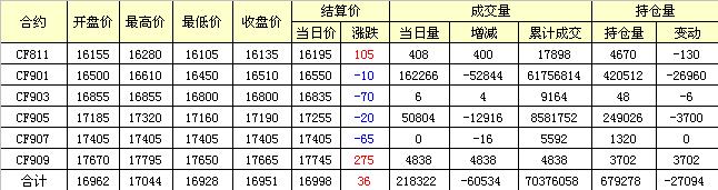 9月17日隔夜鄭棉沖高盤整,今日早盤在多頭平倉和空頭賣盤打壓下走低,午后低位震蕩,日線形成小陽線。日內(nèi)成交量變化不大,持倉量送還減少?;久媲闆r:近日,新疆維吾爾自治區(qū)分行向兵團各師國有棉麻公司集中投放首批2018年度棉花收購貸款6.22億元,較2017年度提前了10天,積極為兵團的棉花產(chǎn)業(yè)發(fā)展提供金融服務(wù),堅決做到“錢等棉”。