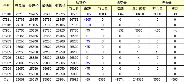 主力CY810合約當(dāng)日交易走勢
