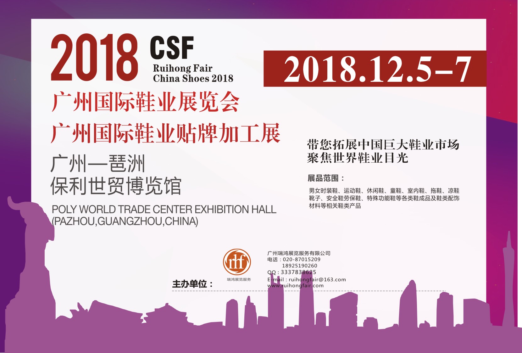 CSFChinaShoesFair廣州國(guó)際鞋業(yè)展覽會(huì)是由廣州瑞鴻展覽服務(wù)有限公司聯(lián)合打造的制鞋行業(yè)專業(yè)成品鞋業(yè)展覽會(huì)。2018年展覽將于12月5日-7日在廣州-琶洲-保利世貿(mào)博覽館再度舉行。