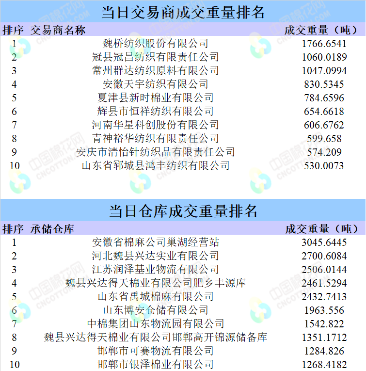當(dāng)日情況:地產(chǎn)棉成交3712.067噸,成交率80%,成交均價(jià)14338元/噸,平均加價(jià)238元/噸,最高成交價(jià)14960元/噸,最低成交價(jià)13870元/噸。新疆棉成交20908.7948噸,成交率82%,成交均價(jià)14933元/噸,平均加價(jià)501元/噸,最高成交價(jià)16540元/噸,最低成交價(jià)14070元/噸。