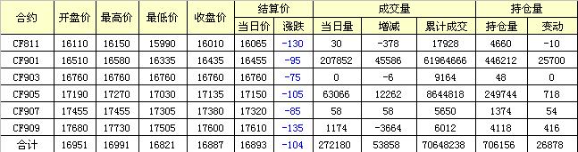 主力CF901合約當(dāng)日交易走勢圖