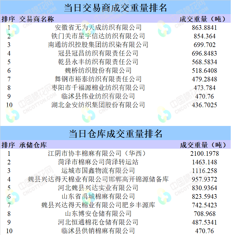 當(dāng)日情況:地產(chǎn)棉成交4052.5693噸,成交率24%,成交均價14367元/噸,平均加價358元/噸,最高成交價14920元/噸,最低成交價13930元/噸。新疆棉成交8254.2031噸,成交率57%,成交均價14901元/噸,平均加價451元/噸,最高成交價16140元/噸,最低成交價13810元/噸。