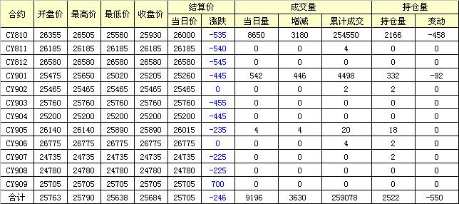 主力CY810合約當(dāng)日交易走勢