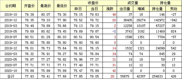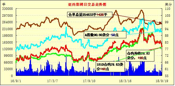 19日紐約期棉市場主力合約止跌反彈。1812合約結(jié)算價(jià)78.72美分,漲20點(diǎn);1903合約結(jié)算價(jià)79.15美分,漲2點(diǎn);1905合約結(jié)算價(jià)79.87美分,跌2點(diǎn)。當(dāng)日12月合約小幅低開,開盤后交易重心維持在78.00-78.50美分區(qū)間震蕩運(yùn)行,后買盤發(fā)力,市場受支撐走高,至當(dāng)日高點(diǎn)79.33美分處受獲利了結(jié)盤壓力交易重心走低,后至收盤后維持在79.00美分一線窄幅震蕩,最終以微漲收盤。美國農(nóng)業(yè)部(USDA)將于北京時(shí)間今天晚上公布上周周度出口數(shù)據(jù),由于中美貿(mào)易爭端愈演愈烈,加之土耳其、印度和巴基斯坦等國近期與美國的緊張關(guān)系,市場普遍關(guān)注是否會(huì)出現(xiàn)大量簽約取消。外圍美元指數(shù)下跌,玉米、小麥和大豆期貨上漲。美股收盤漲跌不一,標(biāo)普和道指逼近歷史新高,納指收跌。