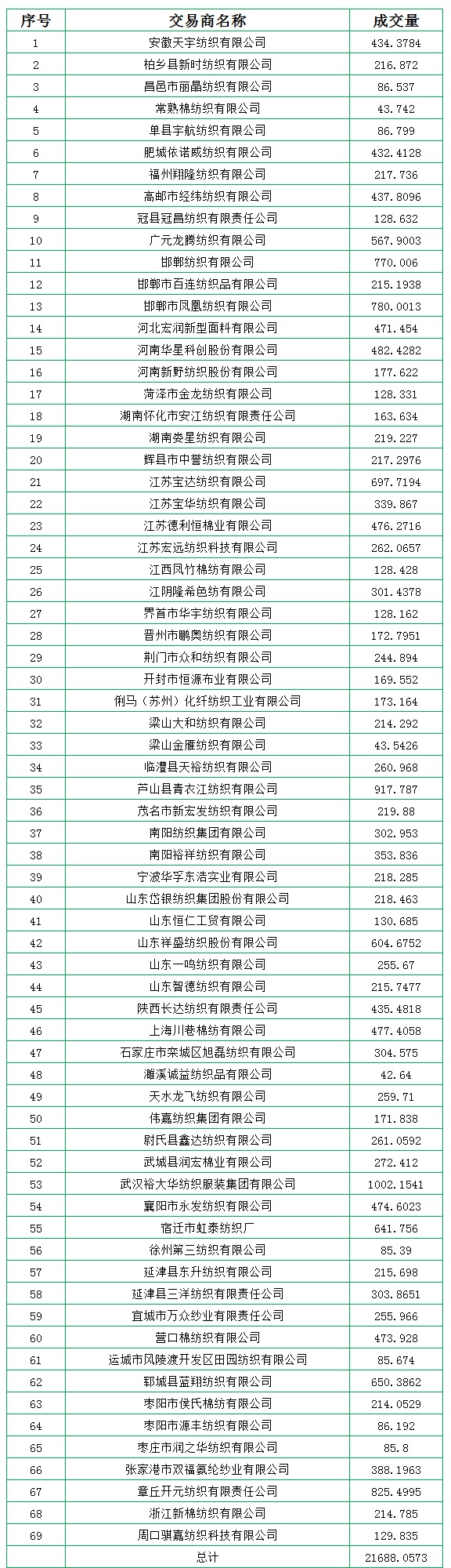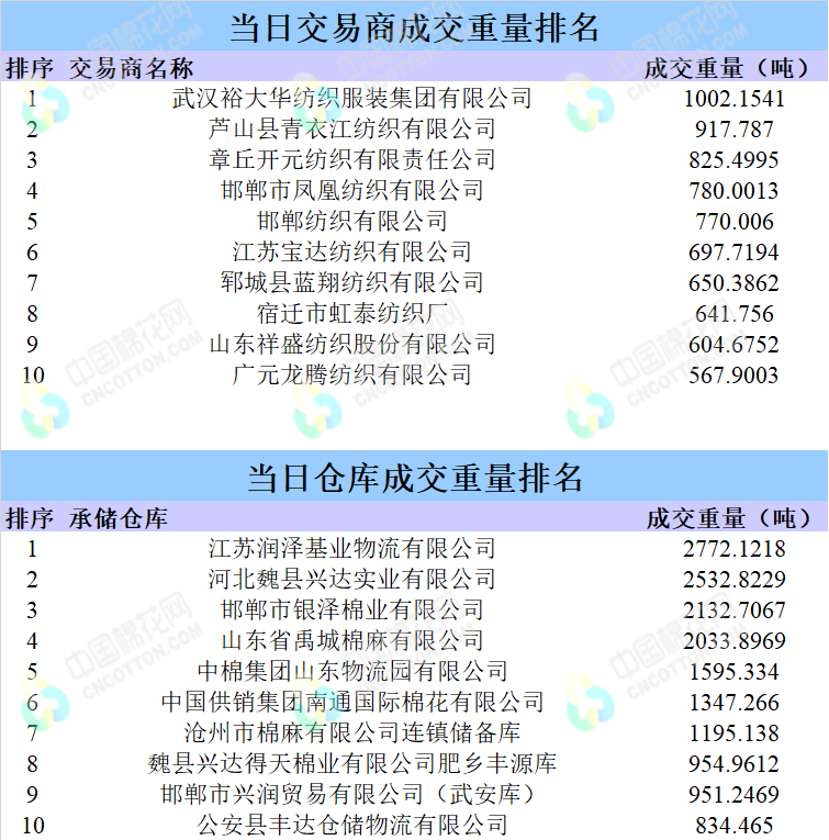 當日情況:地產(chǎn)棉成交2345.643噸,成交率75%,成交均價14624元/噸,平均加價693元/噸,最高成交價15610元/噸,最低成交價14010元/噸。新疆棉成交19342.4143噸,成交率72%,成交均價14756元/噸,平均加價316元/噸,最高成交價16250元/噸,最低成交價14030元/噸。
