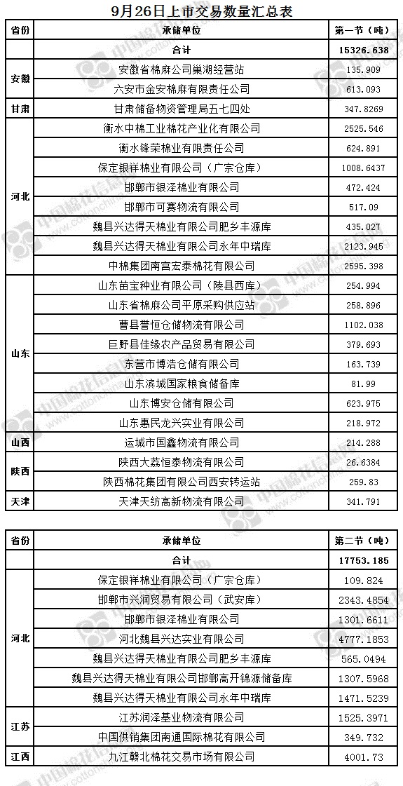 9月26日兩節(jié)共計輪出儲備棉33079.8230噸。第一節(jié)銷售儲備棉15326.638噸,其中需要倒垛出庫78捆。第二節(jié)銷售儲備棉17753.185噸,其中需要倒垛出庫44捆。