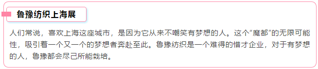 今天是上海Intertextile秋冬面輔料展第一天,魯豫紡織有幸參展,并鄭重決定:上海展會期間,只要您來魯豫展位每買1米布,我們便將捐贈1分錢用于慈善事業(yè)。