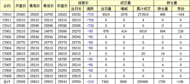 主力CY810合約當(dāng)日交易走勢(shì)