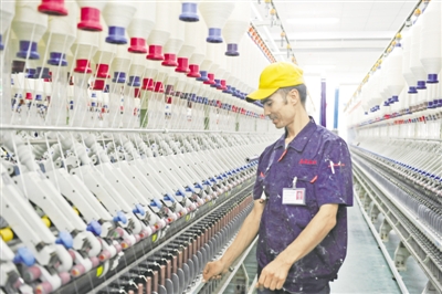 9月25日,沙雅縣鴻力紡織有限公司工人在生產(chǎn)線上加工紡織品。沙雅縣鴻力紡織有限公司于2009年建成投產(chǎn),以棉花收購、加工、銷售為主營業(yè)務(wù),優(yōu)先解決貧困戶進(jìn)廠就業(yè)。目前,該公司解決當(dāng)?shù)剞r(nóng)牧民就業(yè)900余人,其中貧困戶260人,人均月收入達(dá)3000多元。(標(biāo)題:鴻力紡織:優(yōu)先解決貧困戶進(jìn)廠就業(yè))