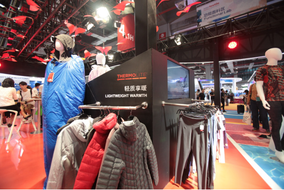 在4.1國際館,品牌從本質(zhì)上關(guān)注可持續(xù)性議題——升級的COOLMAX®EcoMade纖維結(jié)合再生棉花概念的棉襪,都通過了SCS和GRS系統(tǒng)認(rèn)證。而隨后推出了一款創(chuàng)新的、可持續(xù)的羽絨替代產(chǎn)品——THERMOLITE®T-DownEcoMade保溫棉。