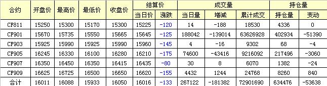 主力CF901合約當日交易走勢圖