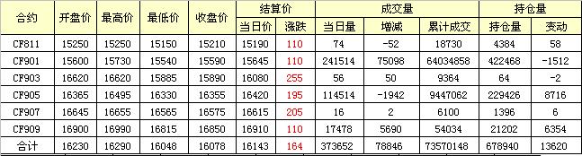 主力CF901合約當(dāng)日交易走勢(shì)圖