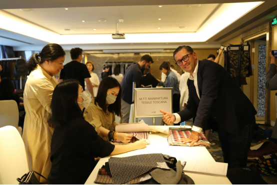 ▲Prato Trade 意大利面料供應(yīng)商代表和高端買(mǎi)家合影