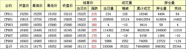主力CF901合約當日交易走勢圖