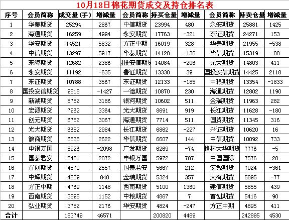 10月18日,隔夜鄭棉盤整后下滑,今日早盤橫向震蕩,午后增倉(cāng)下跌,日線形成陰線。日內(nèi)成交量放大,持倉(cāng)量增加?;久媲闆r:在經(jīng)歷了周二夜間的局部雷暴天氣之后,周三西德州以多云天氣為主,氣溫有所升高。降雨量?jī)H不足0.8厘米,且分布較為分散。周三預(yù)計(jì)將有局部陣雨天氣,至周五有30-90%的概率出現(xiàn)小到中雨。由于近日持續(xù)降雨,已經(jīng)出現(xiàn)棉絮脫落現(xiàn)象,此時(shí)再出現(xiàn)大風(fēng)和降雨將使不利影響加劇。周三德州南部局部區(qū)域戶外作業(yè)恢復(fù)進(jìn)行,但周三夜間將有大概率出現(xiàn)局部降雨。
