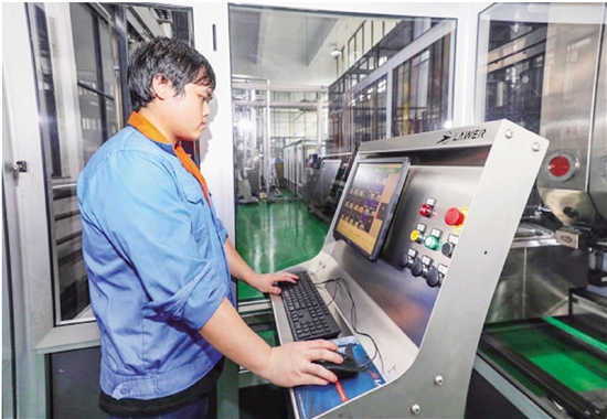 近日,在紹興永利印染染色車間,電腦系統(tǒng)正在按預(yù)先設(shè)定的步驟自動(dòng)進(jìn)行集控,從自動(dòng)配色到打樣、稱料等步驟實(shí)行自動(dòng)化操作。據(jù)了解,紹興永利印染從2016年開(kāi)始先后投資5.6億元,引進(jìn)德國(guó)自動(dòng)化系統(tǒng)和意大利自動(dòng)稱料機(jī),實(shí)現(xiàn)全面信息化操作。(標(biāo)題:永利印染:自動(dòng)化染色車間)