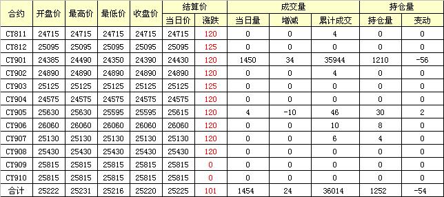 主力CY901合約當(dāng)日交易走勢
