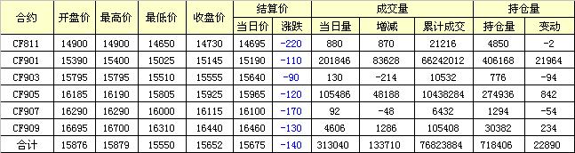 主力CF901合約當(dāng)日交易走勢圖