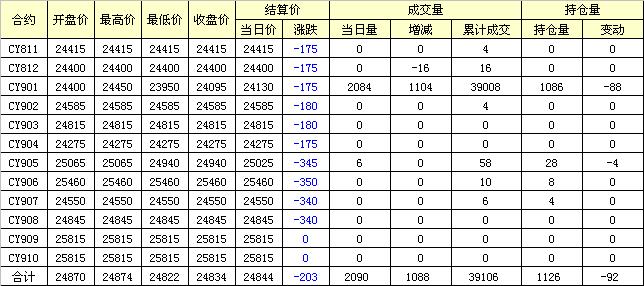 主力CY901合約當日交易走勢