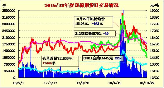 10月29日隔夜鄭棉盤整,今日盤中在空頭賣盤壓制下走低,日線形成陰線。日內成交量放大,持倉量增加?;久媲闆r:根據(jù)美國國家颶風中心檢測數(shù)據(jù),周二夜間颶風Willa在墨西哥西海岸登陸,強度為三級。至周三早間Willa強度已經(jīng)減弱為熱帶低壓,隨著其沿東北方向移動,給途經(jīng)區(qū)域帶來降雨天氣。周二夜間西德州出現(xiàn)惡劣天氣,預計周三將持續(xù)降雨。降雨分布范圍較廣,預計將帶來小到中度降雨,局部區(qū)域可能降雨量較大,戶外作業(yè)因此有所停滯。周四預計該地區(qū)將以大部晴朗為主,氣溫有所回升,預計近五天都將以晴朗天氣為主,將有助于土壤濕度降低硬度恢復。