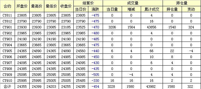 主力CY901合約當(dāng)日交易走勢
