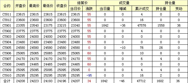 主力CY901合約當日交易走勢