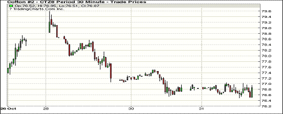 10月最后一個(gè)交易日紐約期棉市場(chǎng)近跌遠(yuǎn)漲。1812合約結(jié)算價(jià)76.86美分,跌4點(diǎn);1903合約結(jié)算價(jià)78.30美分,跌6點(diǎn);1905合約結(jié)算價(jià)79.49美分,跌2點(diǎn)。其他合約上漲1-9點(diǎn)不等。當(dāng)日12月合約小幅低開,開盤后交易重心受支撐上行,高點(diǎn)處賣盤入場(chǎng),市場(chǎng)承壓走低,后至收盤處維持震蕩態(tài)勢(shì),最終未能扭轉(zhuǎn)跌勢(shì),以微幅下跌收盤。主力合約連續(xù)三個(gè)交易日收跌,累計(jì)下跌167點(diǎn)。據(jù)悉,某大型多頭基金開始向3月移倉。此外,美元維持強(qiáng)勁勢(shì)頭,也對(duì)美棉現(xiàn)貨銷售進(jìn)度產(chǎn)生不利影響。外圍美元指數(shù)上漲,大豆期貨上漲,小麥和玉米期貨下跌。周三美股維持前一日漲勢(shì),三大股指齊收漲。