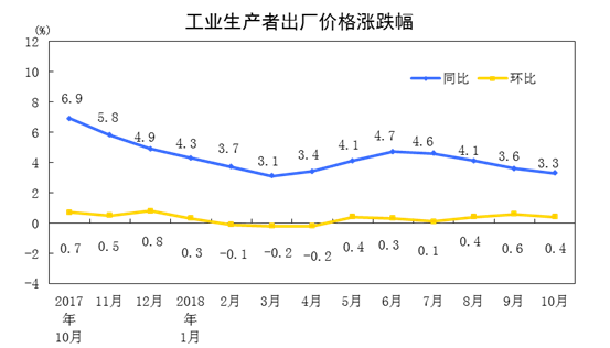 2018年10月工業(yè)生產(chǎn)者價格主要數(shù)據(jù)