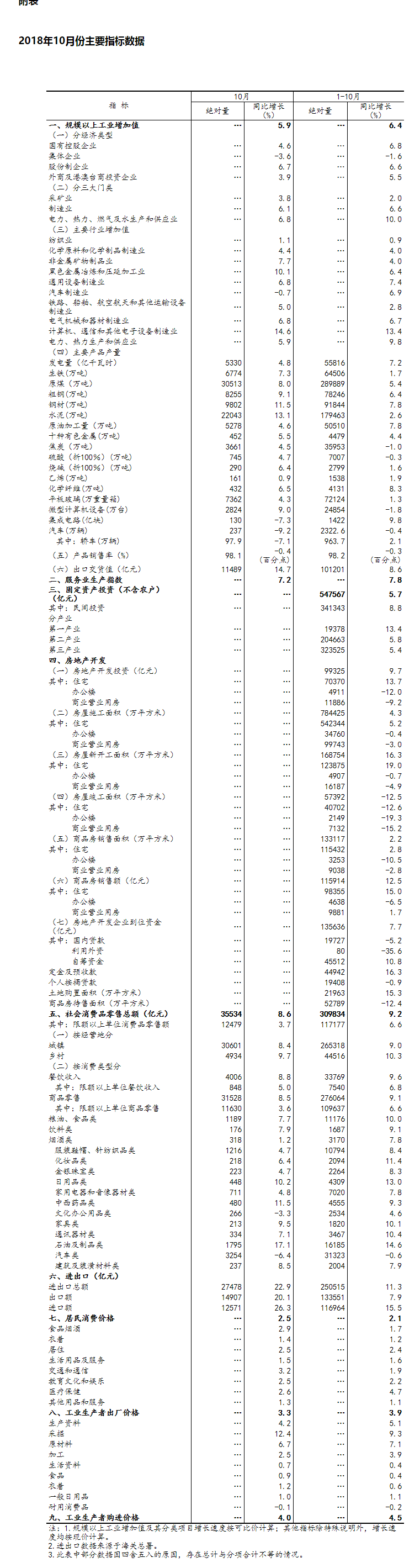 ?。?)規(guī)模以上工業(yè)增加值及其分類項(xiàng)目增長(zhǎng)速度按可比價(jià)計(jì)算,為實(shí)際增長(zhǎng)速度;其他指標(biāo)除特殊說明外,均按現(xiàn)價(jià)計(jì)算,為名義增長(zhǎng)速度。
