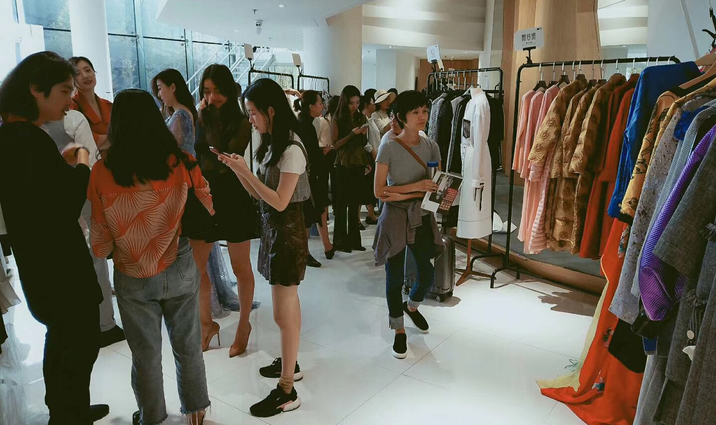 定貨會(huì)現(xiàn)場(chǎng)設(shè)計(jì)師和買家熱切交流